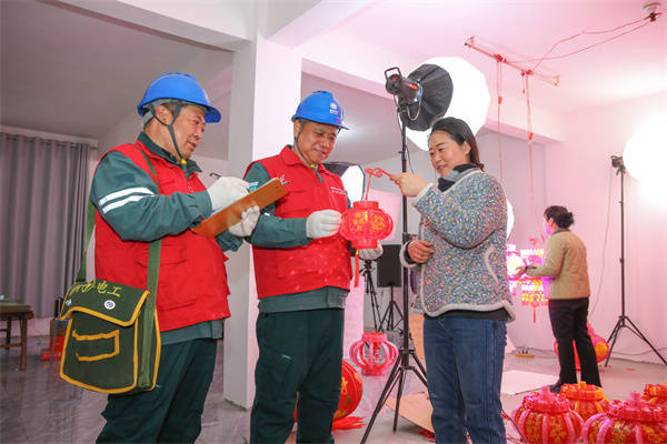 供电所服务队员深入生产企业、加工作坊和销售门店,开展用电设备检查和隐患排查。针对宫灯生产过程中焊接、烘干等环节的用电特点,以及电商直播对供电稳定性的高要求,服务队提供了专业的用电指导。