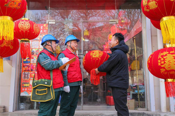 在屯头村的一家宫灯门店,供电服务队员正与店主深入交流,了解经营状况,征集用电服务建议。赵亚龙摄