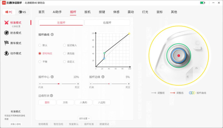 它的性能表现、握持手感、智控调校都是非常在线。像北通鲲鹏40这样一款功能全面的手柄甚至能在关键对局中影响胜负走向。对经常玩游戏玩家而言,一款趁手的手柄往往能成为战力倍增的关键——FPS游戏里的精准跟枪、动作游戏中的丝滑连招、赛车游戏里的细腻油门控制,都离不开硬件的扎实支撑与智能算法的精准调教。