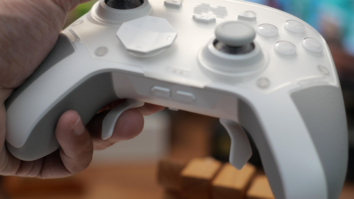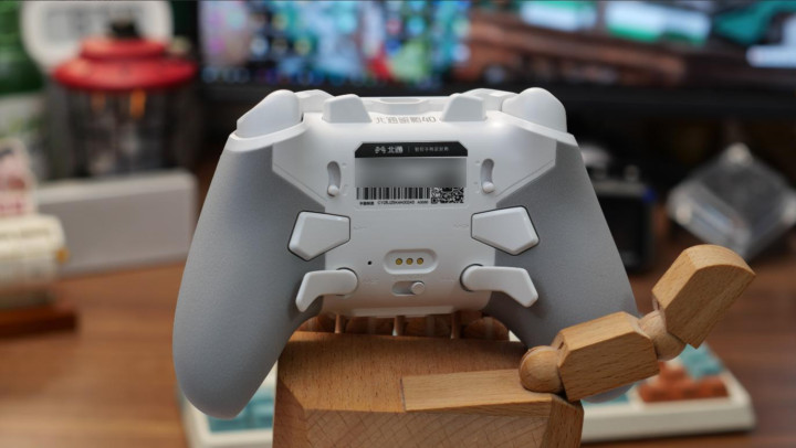 为了更好的适配更多的游戏,背部设置了4个自定义背键,其中2个是三向可旋转宏背键,可以拆卸,采用的是磁吸的,三角度调节适配不同手型和握持姿势,对于玩对战游戏,配合肩键简直是无敌。触发力度适中,可映射跳跃、换弹等常用功能,既提升了操作效率,又不会出现误触风险。