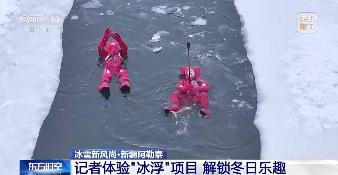 据了解,游玩者所穿的漂浮衣内层可锁温,外层具备高浮力,能隔绝冰面低温。衣服背后有一个长方形气囊,具备浮力与缓冲性,既能保障漂浮姿态稳定,又能避免身体与冰面直接接触,让人的头部和肩部浮在水面上。