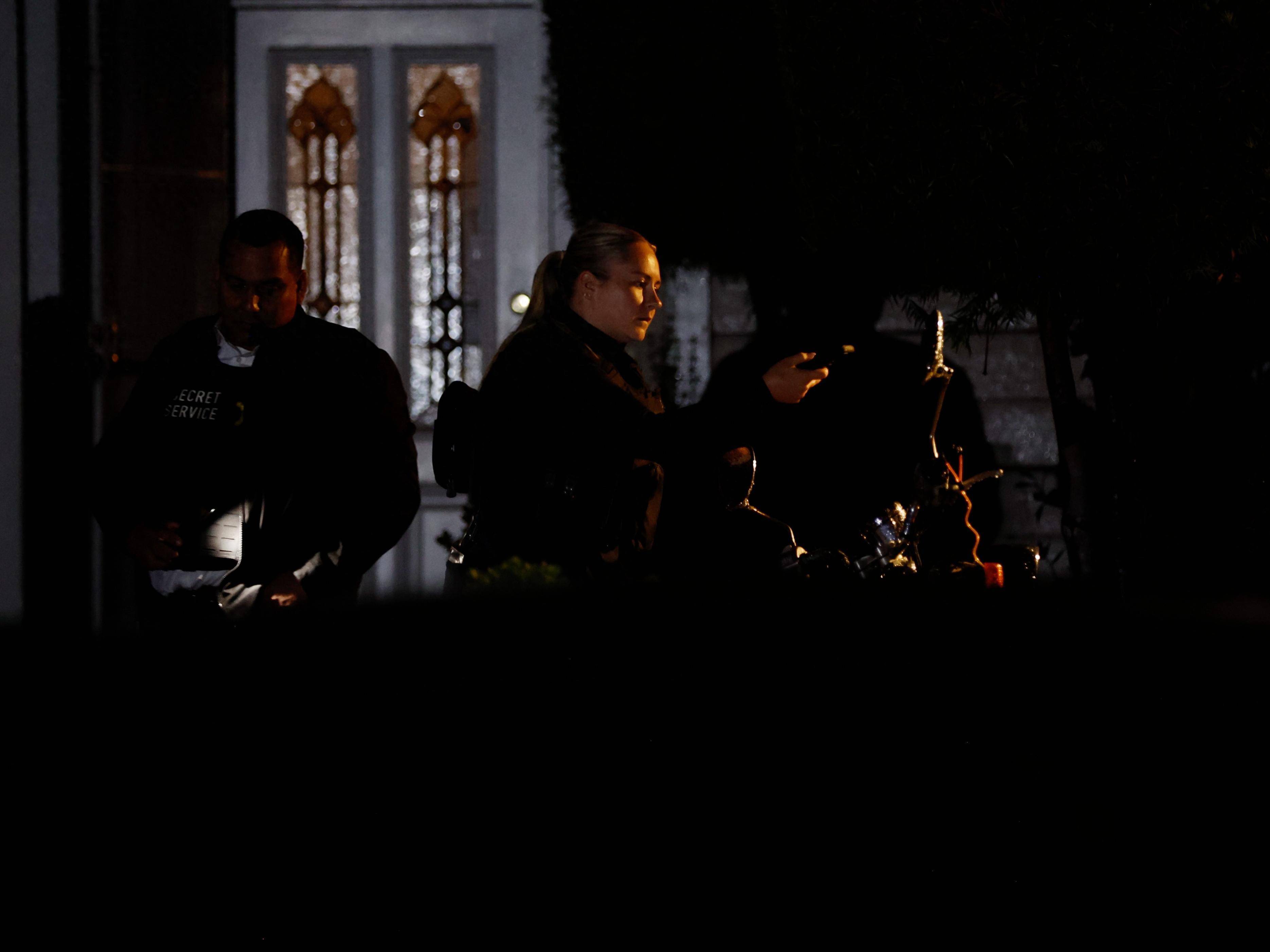 ↑4月26日凌晨,在美国加利福尼亚州托兰斯市,联邦调查局探员在科尔·艾伦的住所附近进行搜查。